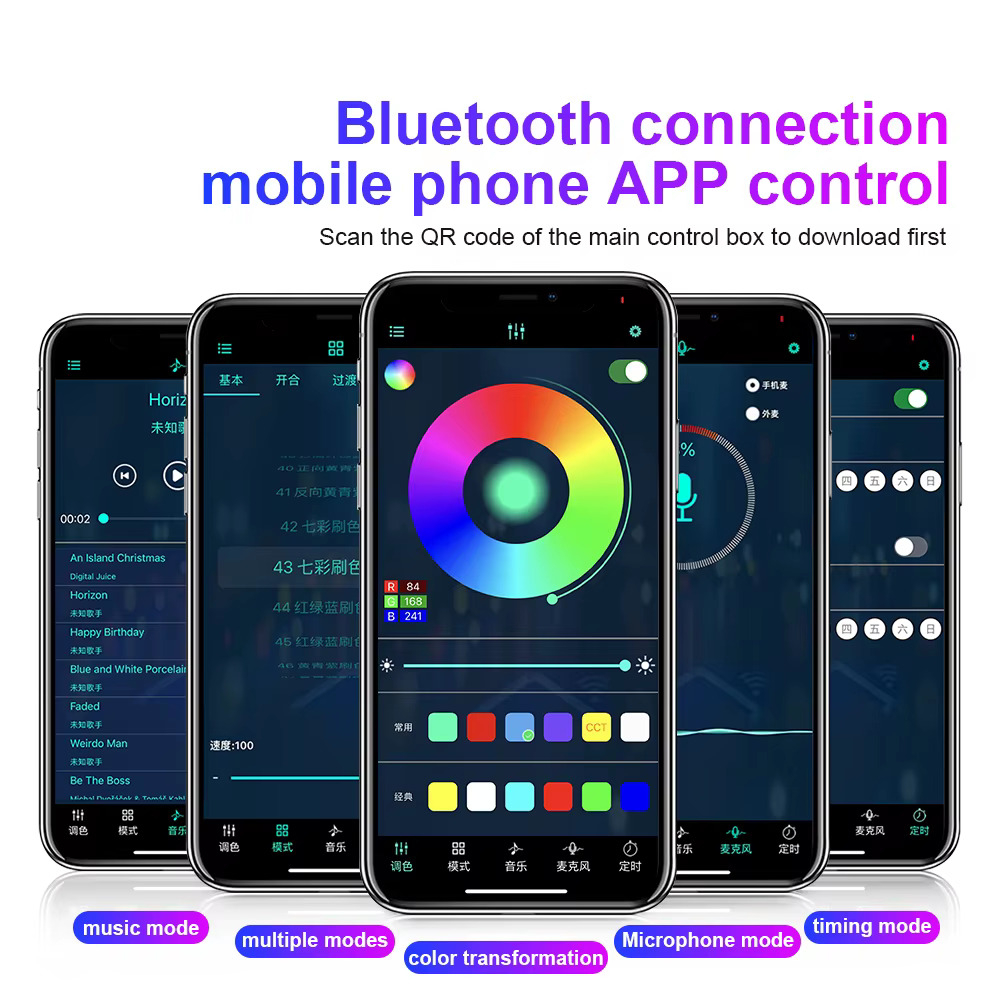 Controlul se face simplu si rapid prin aplicatie mobila, conectata prin Bluetooth, oferindu-ti posibilitatea de a personaliza complet culorile, intensitatea si efectele direct de pe telefon.